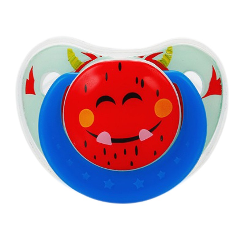 Πιπίλα με χαριτωμένο σχεδιάκι. Η πιπίλα είναι κατασκευασμένη από σιλικόνη, είναι μαλακή, επίπεδη και ορθοδοντική (βλ. δεύτερη εικόνα).