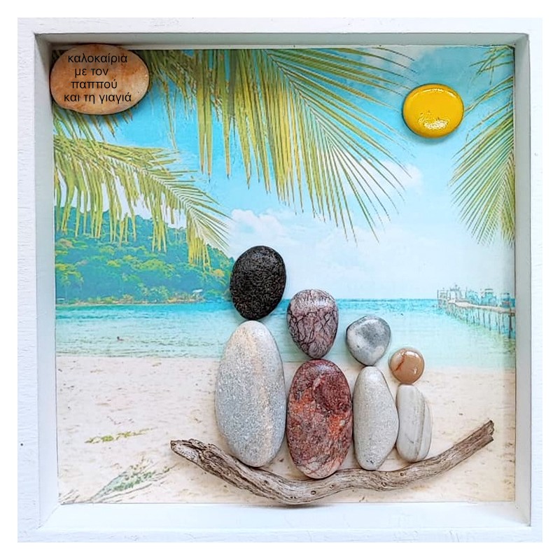 Σας φτιάχνουμε ξεχωριστά προσωποποιημένα δώρα για τα αγαπημένα σας πρόσωπα. Τα κάδρα μας είναι ξύλινα, κατασκευασμένα εξ ολοκλήρου στο χέρι από επαγγελματία του χώρου. Τα υλικά που χρησιμοποιούμε είναι βότσαλα, θαλασσόξυλα και άλλα υλικά από τη φύση.
