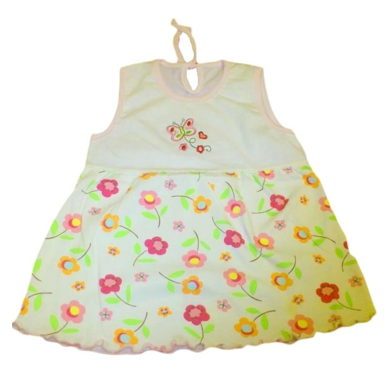 Δροσερά βαμβακερά φορεματάκια με όμορφα σχεδιάκια για τα νεογέννητα κοριτσάκια σας. Θα σας λύσουν τα χέρια στο «τι θα βάλουμε σήμερα» τις ζεστές μέρες του καλοκαιριού. Είναι αμάνικα, δένουν πίσω στο λαιμουδάκι και στη φούστα έχουν διαφορετικό μοτίβο με λουλουδάκια ή άλλα σχέδια. Στη μπροστινή πλευρά είναι κεντημένο διαφορετικό σχεδιάκι σε κάθε φόρεμα.